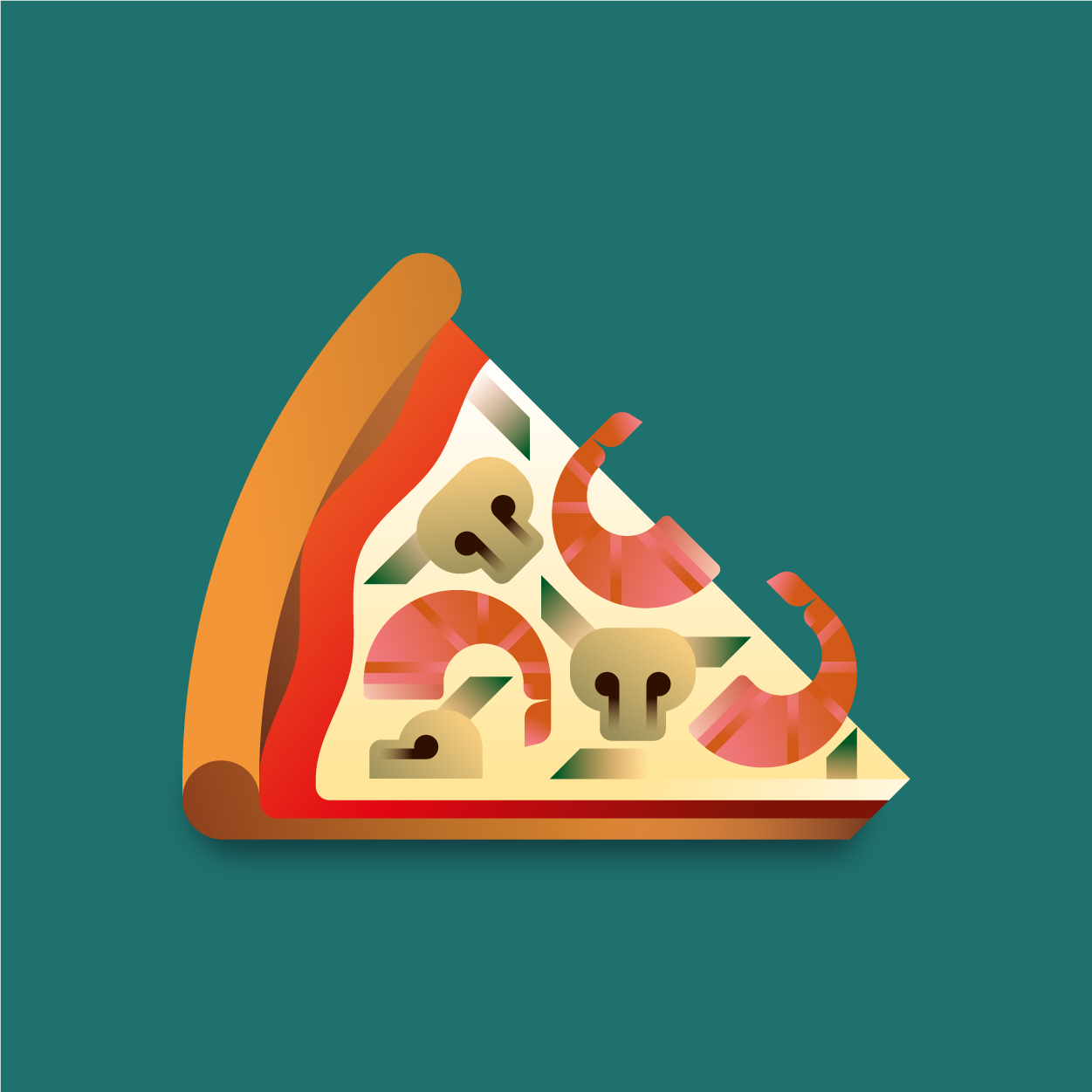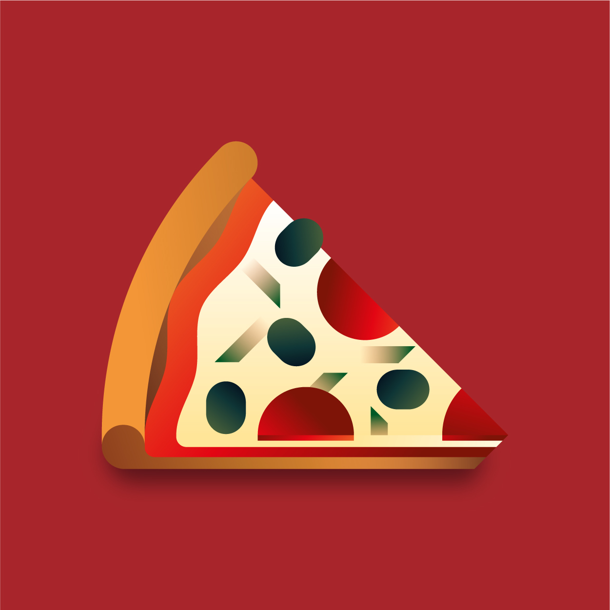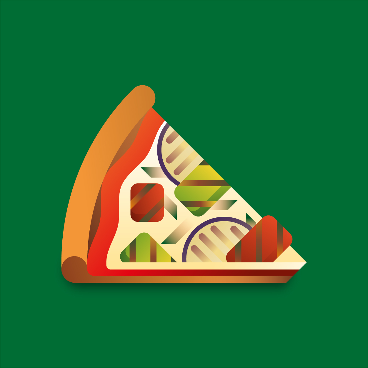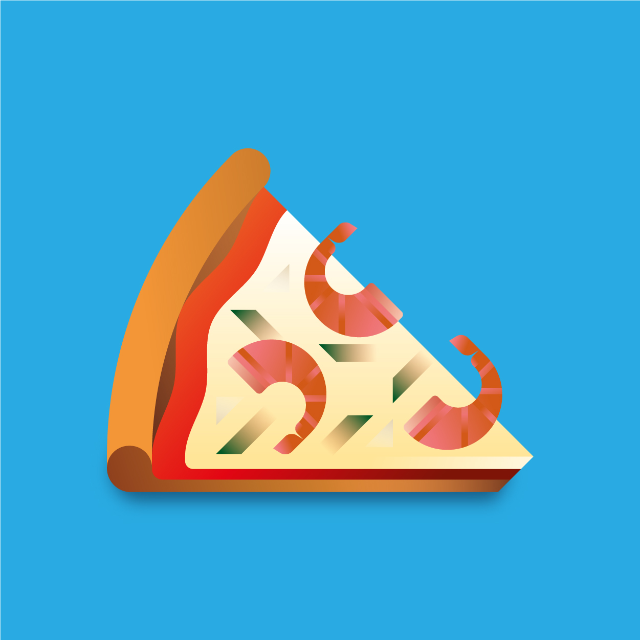 100 pizza flavors, 100 unique slices to taste with your eyes. Be careful, it can cause sudden hunger. All slices were drawn with vectors and gradients only.