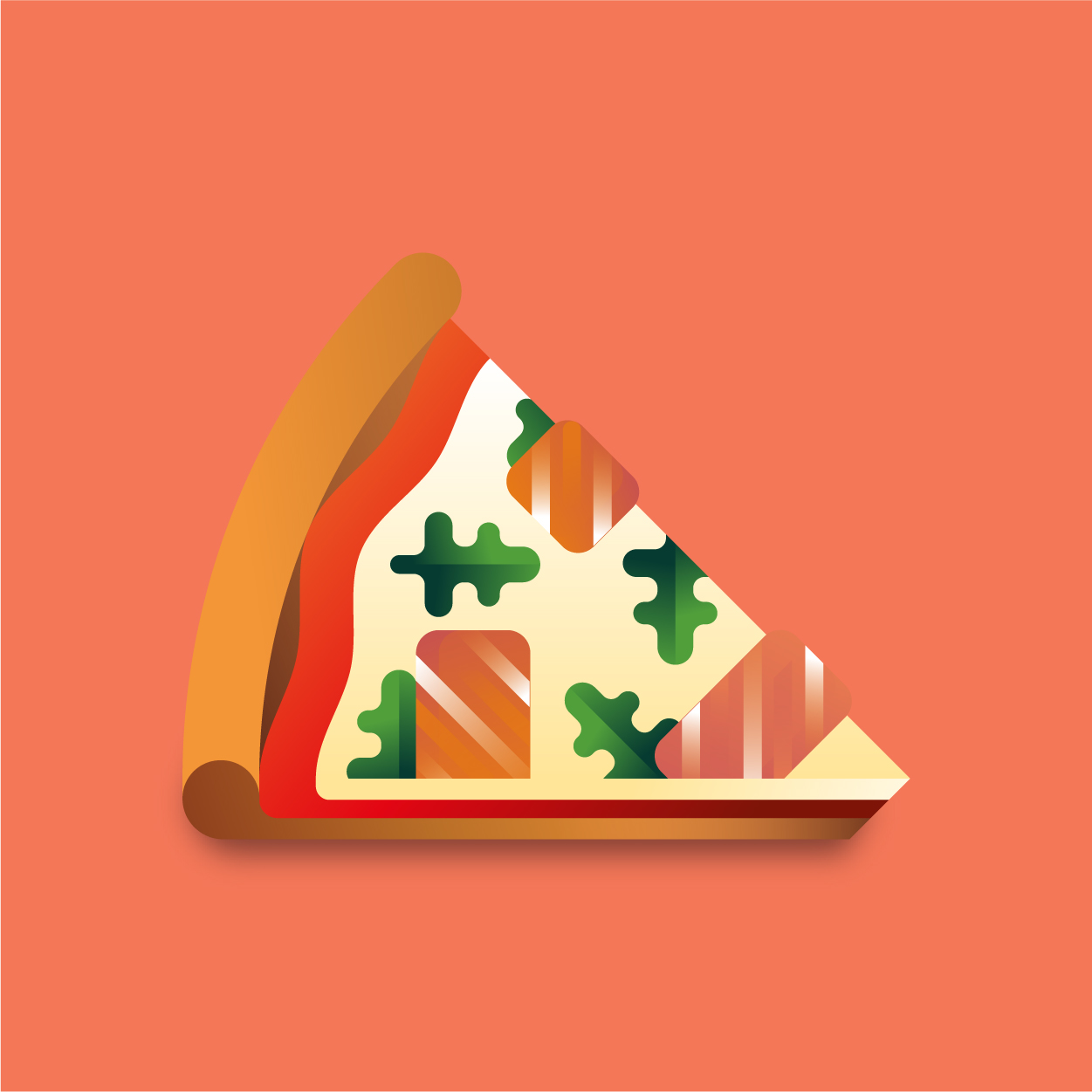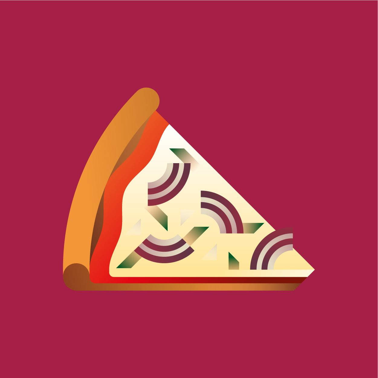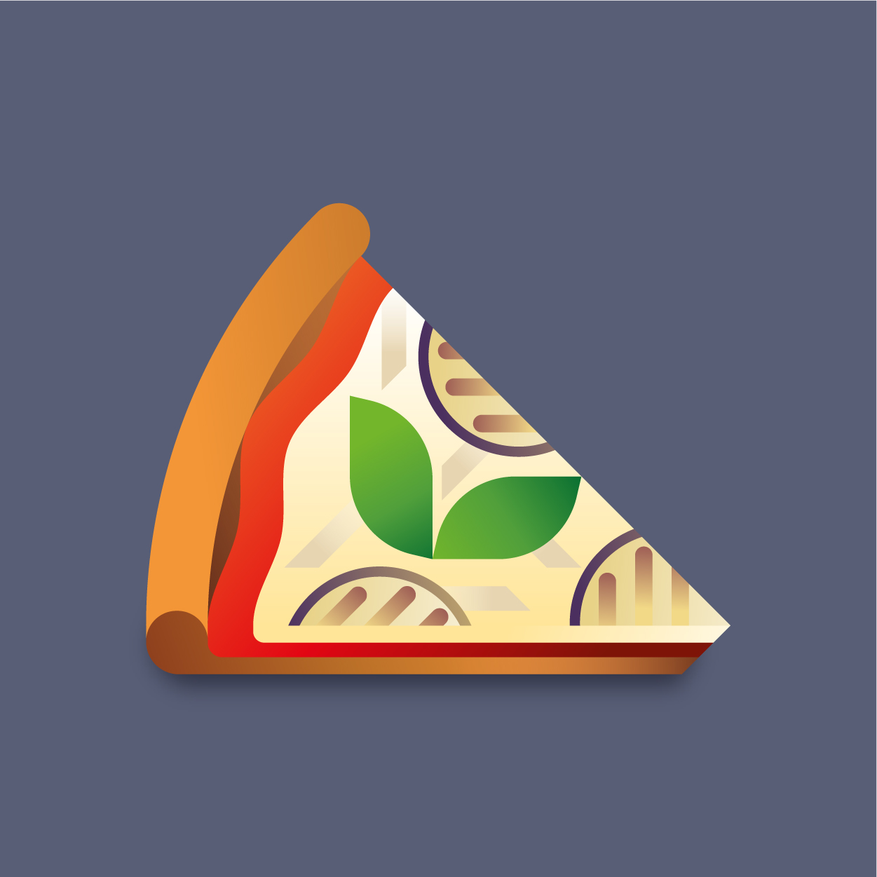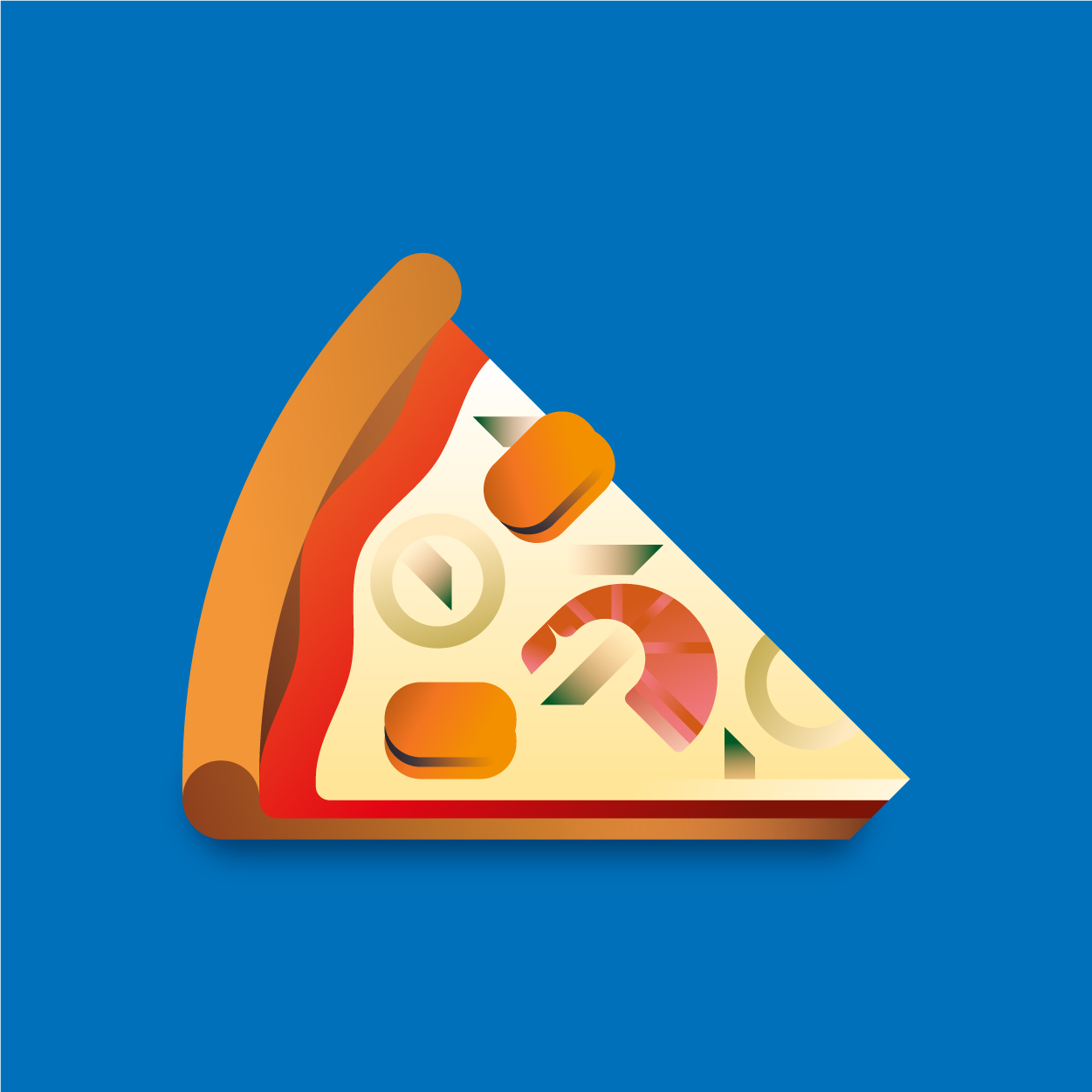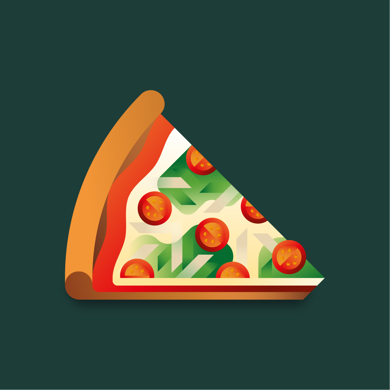 100 pizza flavors, 100 unique slices to taste with your eyes. Be careful, it can cause sudden hunger. All slices were drawn with vectors and gradients only.