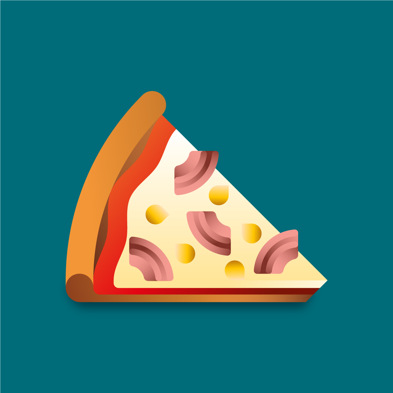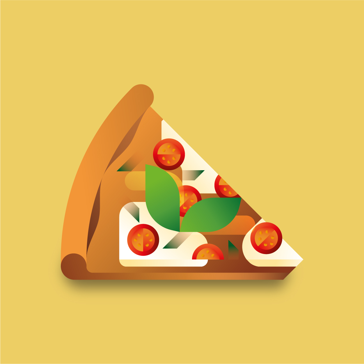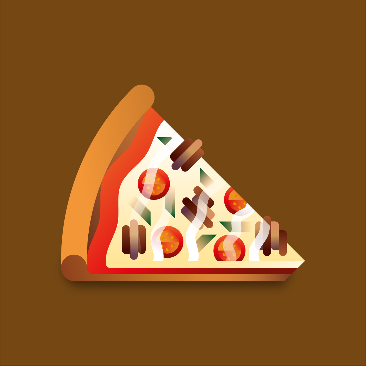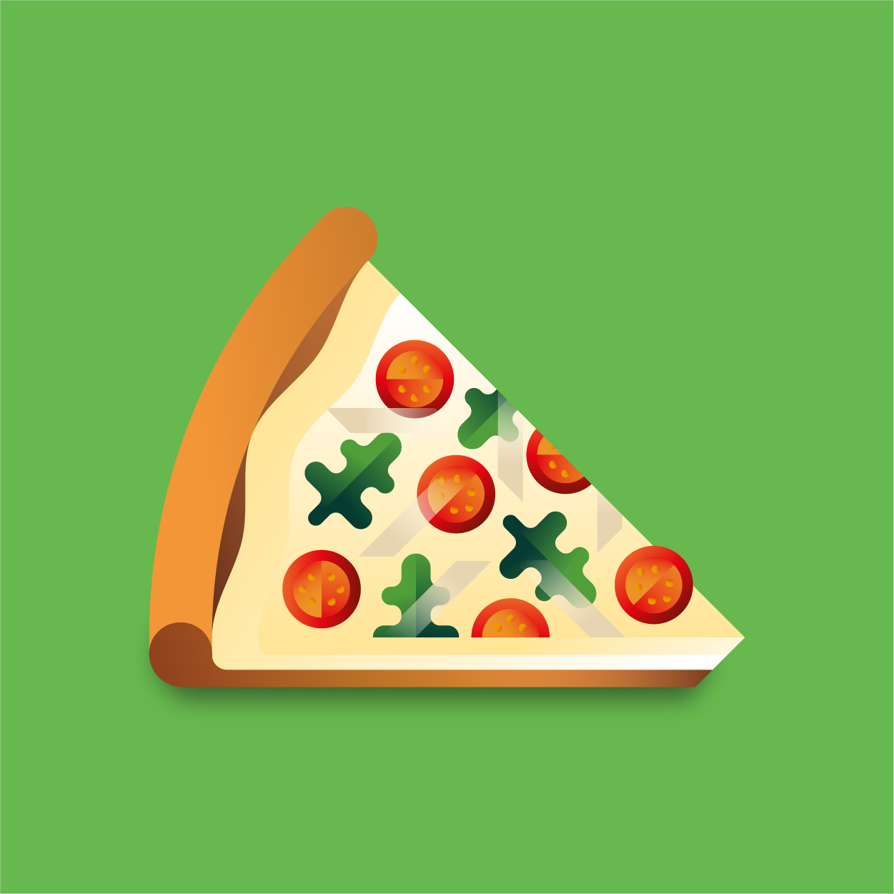 100 pizza flavors, 100 unique slices to taste with your eyes. Be careful, it can cause sudden hunger. All slices were drawn with vectors and gradients only.
