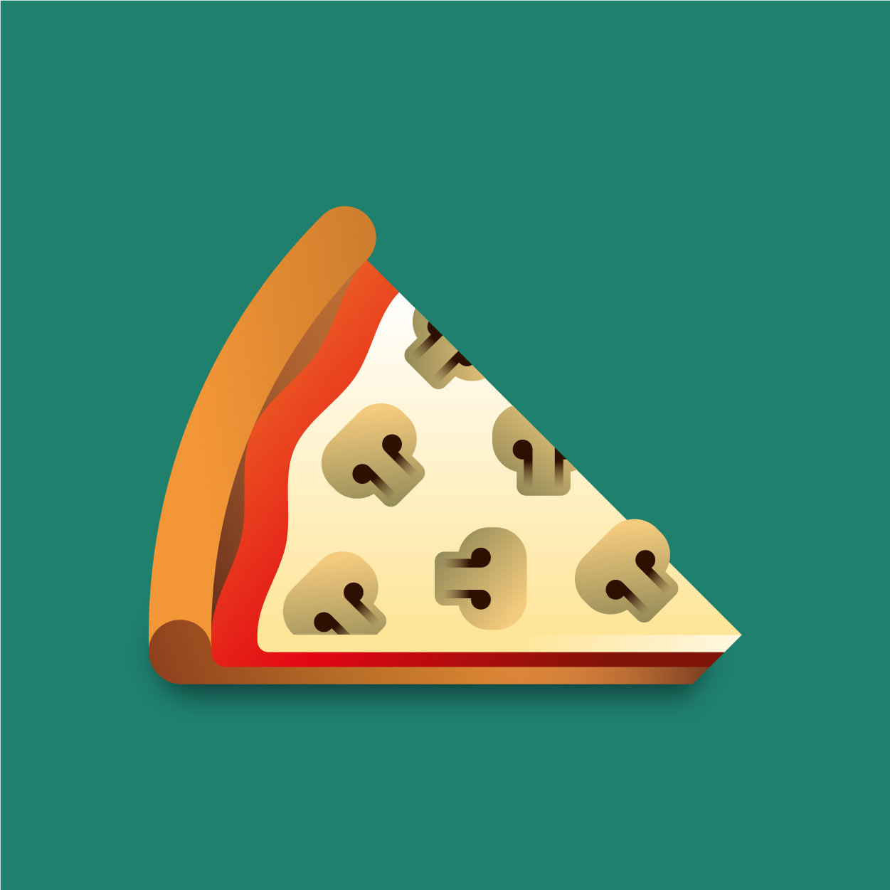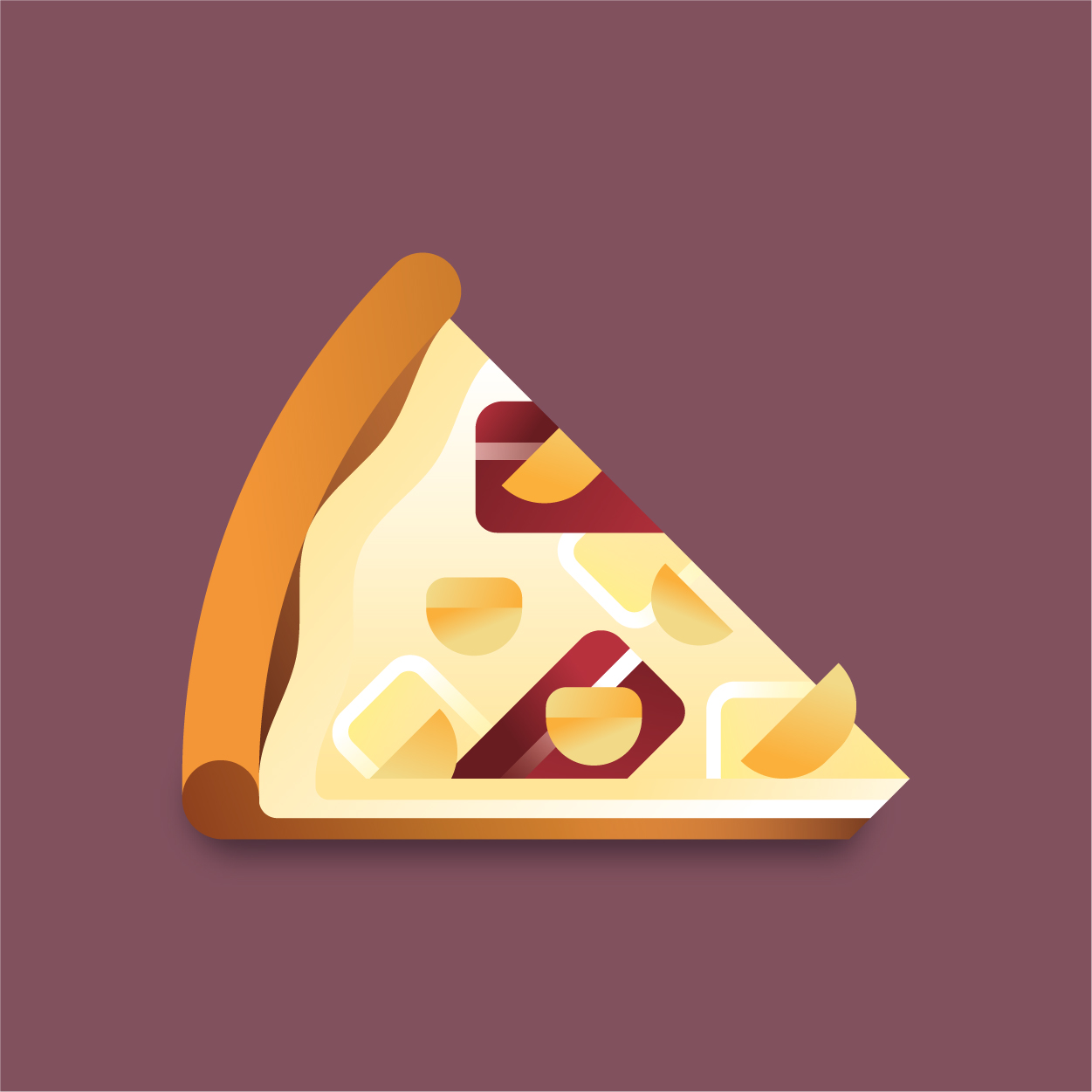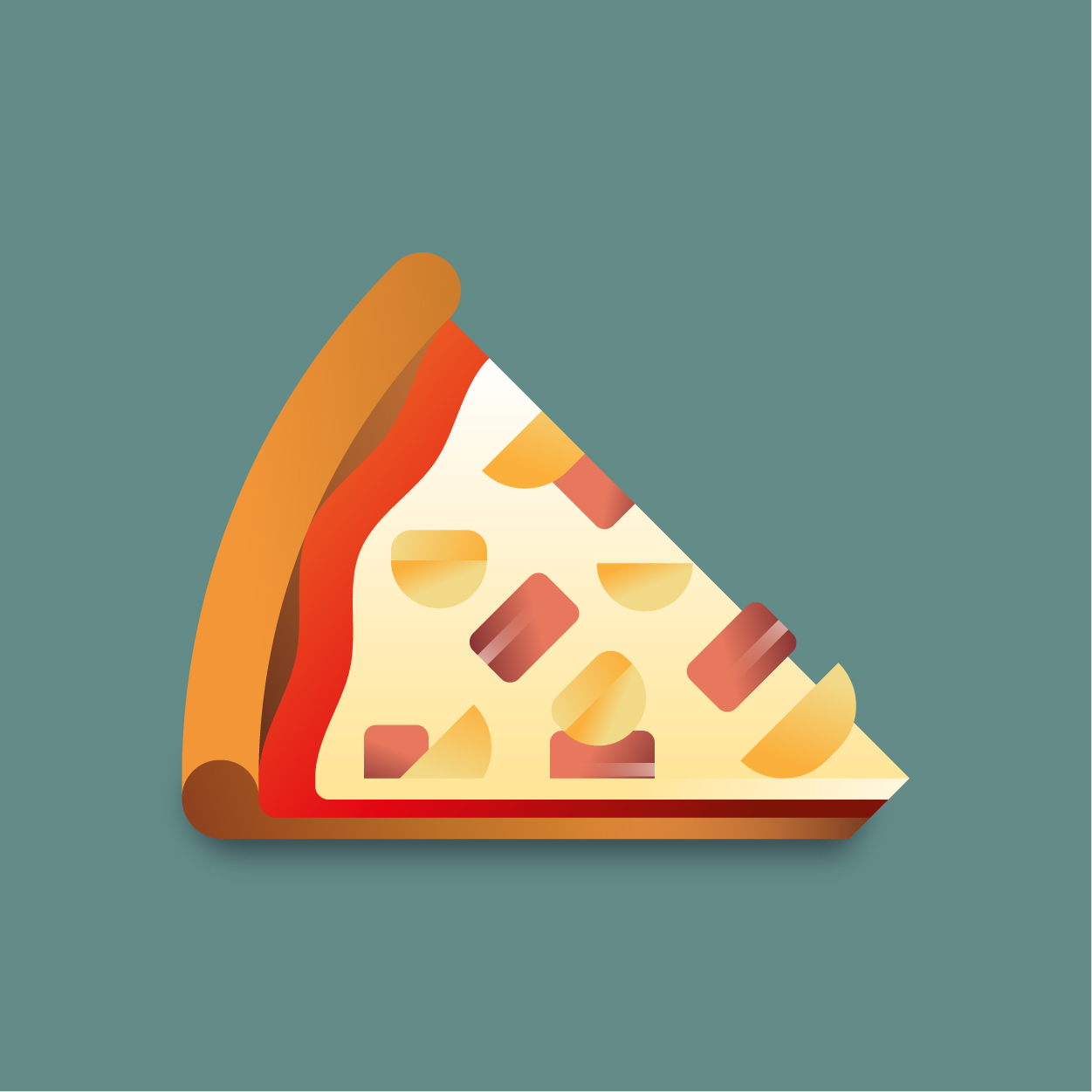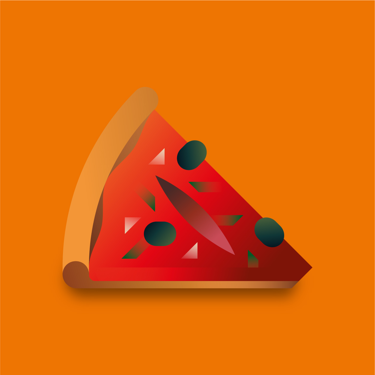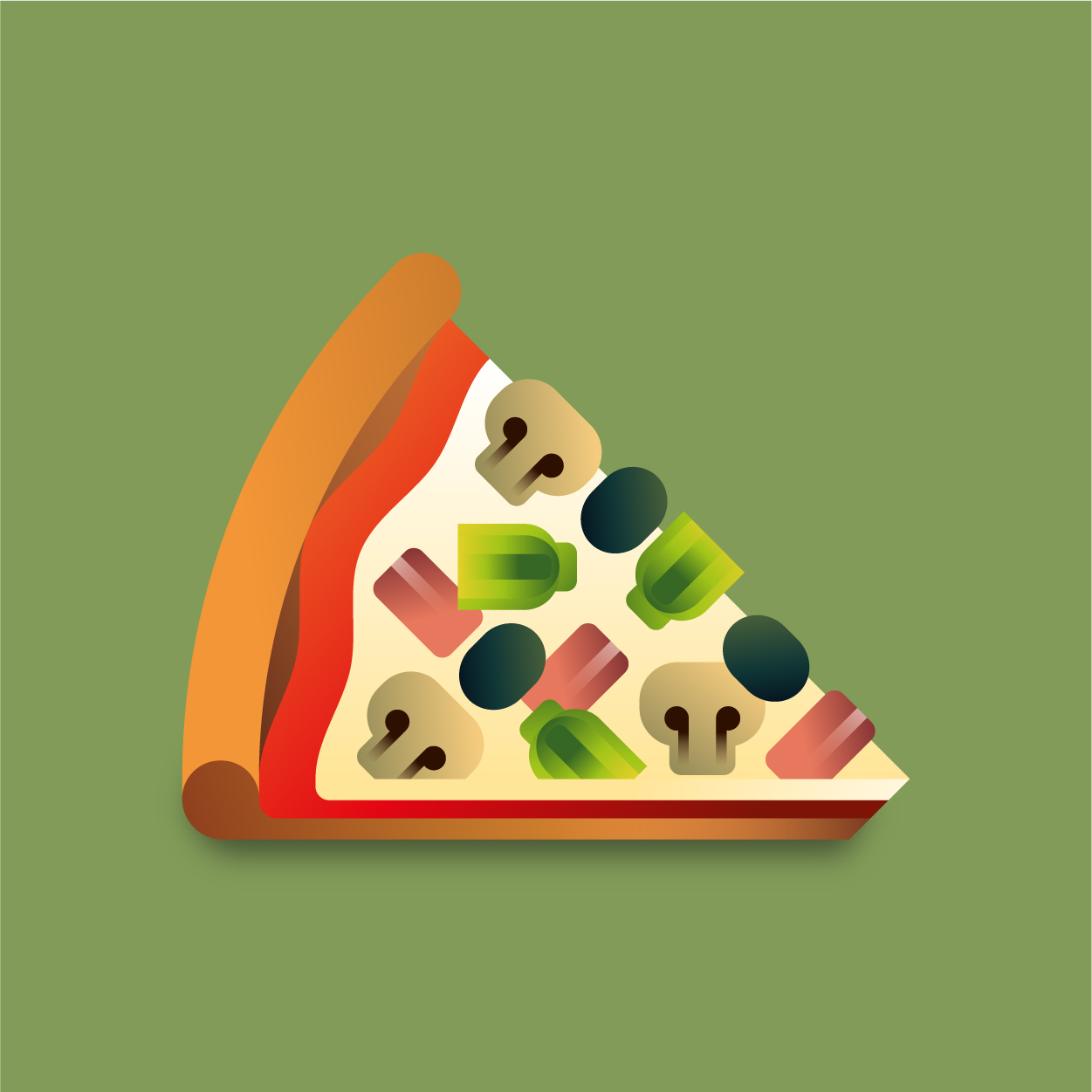 100 pizza flavors, 100 unique slices to taste with your eyes. Be careful, it can cause sudden hunger. All slices were drawn with vectors and gradients only.