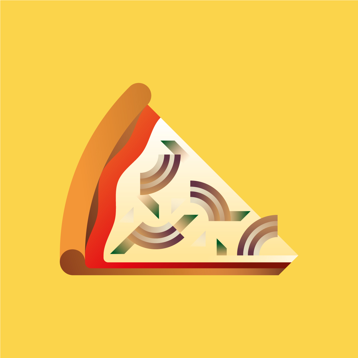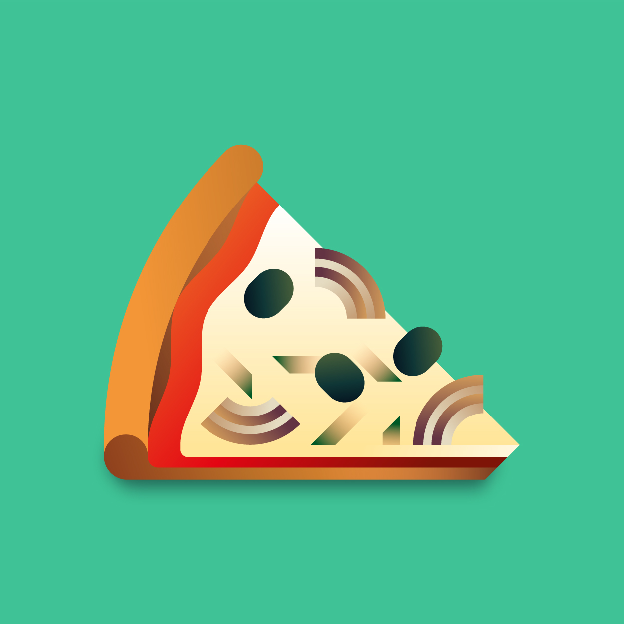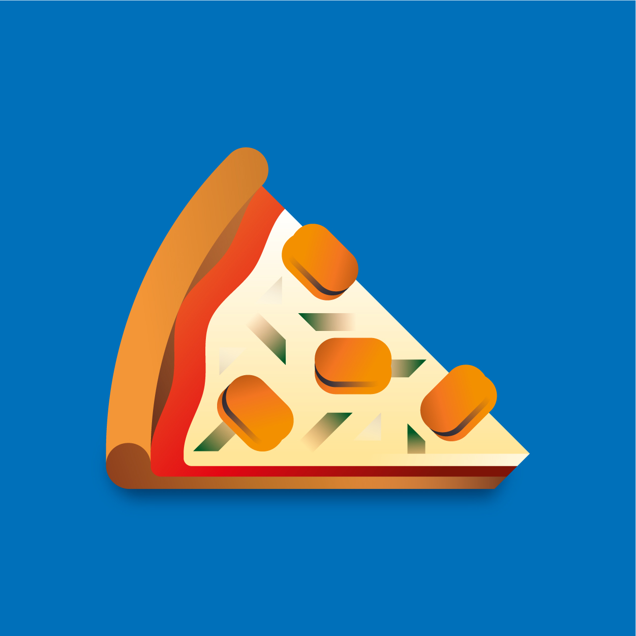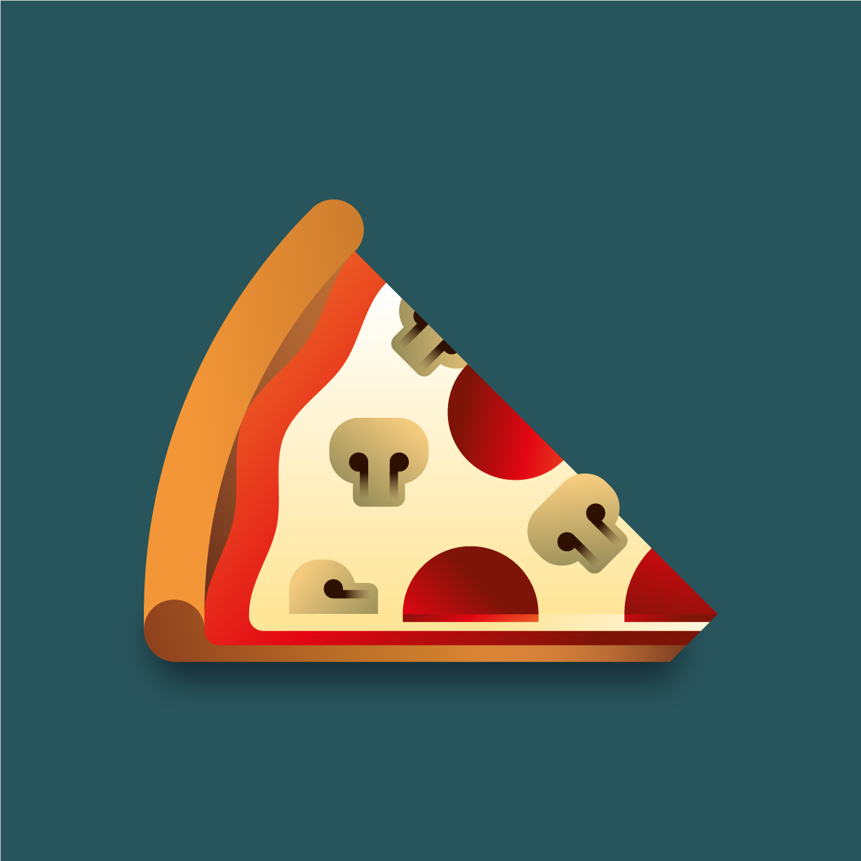 100 pizza flavors, 100 unique slices to taste with your eyes. Be careful, it can cause sudden hunger. All slices were drawn with vectors and gradients only.