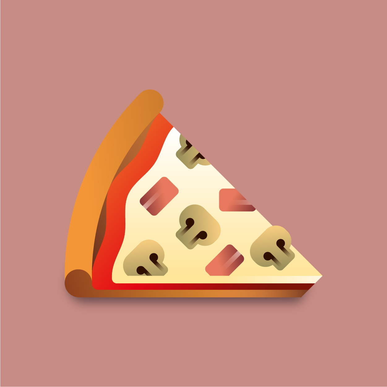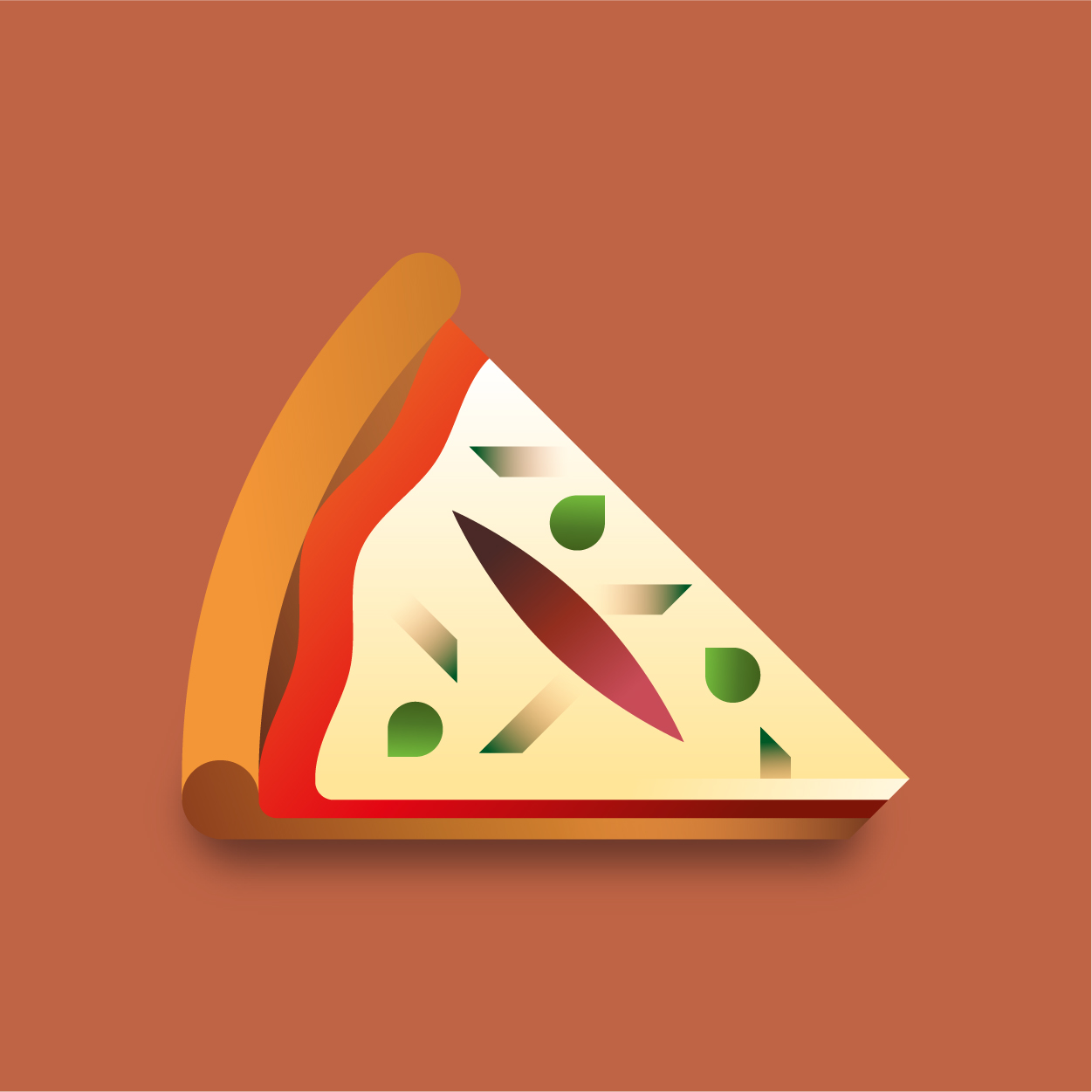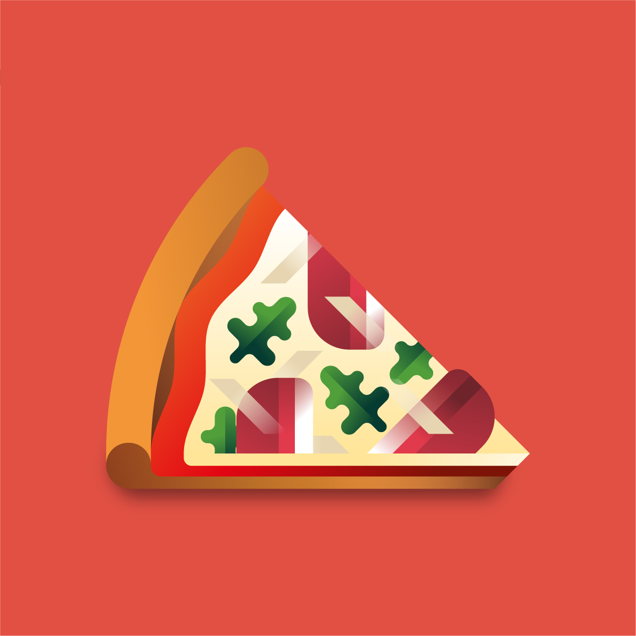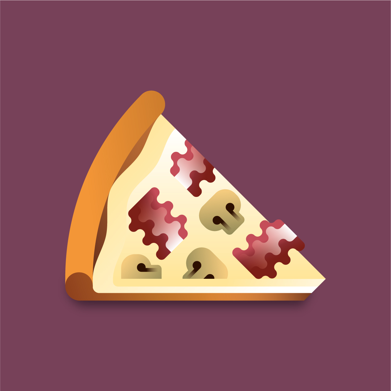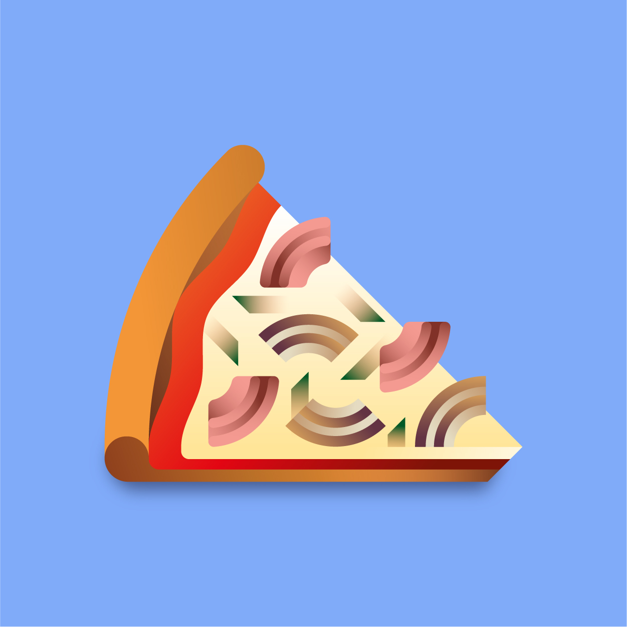 100 pizza flavors, 100 unique slices to taste with your eyes. Be careful, it can cause sudden hunger. All slices were drawn with vectors and gradients only.