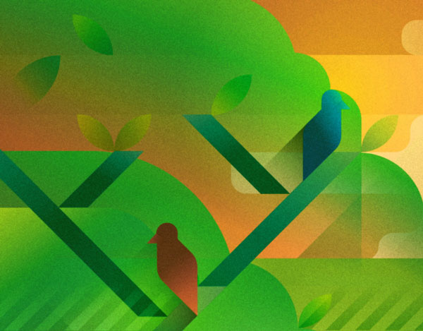 A funny scout giraffe drinking its lemonade in the jungle with some tiny parrots, illustration by francesco faggiano illustrator
