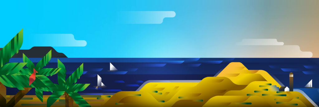 The island of Gran Canaria is often considered as a “micro continent” because it presents a great variety of landscapes and microclimates, managing to pass from the mountains to the sea, even to the desert, in a short time. Exploring the island during these two years we have been able to admire different types of coasts, from golden sand beaches to the volcanic ones, framed by evocative and always different landscapes. Thus, imagining a 360° tour of the island, starting from Las Palmas in a clockwise direction, we decided to inaugurate our new website and the first blog article with a series of original illustrations that show the main coasts of Gran Canaria along the day.