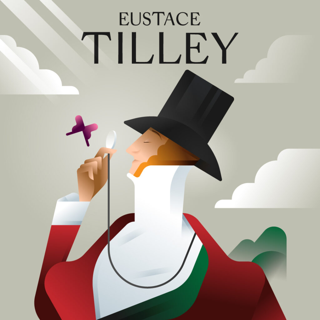 A series of alternative portraits of the famous dandy Eustace Tilley, created by Rea Irvin for the cover of the first issue of “The New Yorker” magazine in 1925.